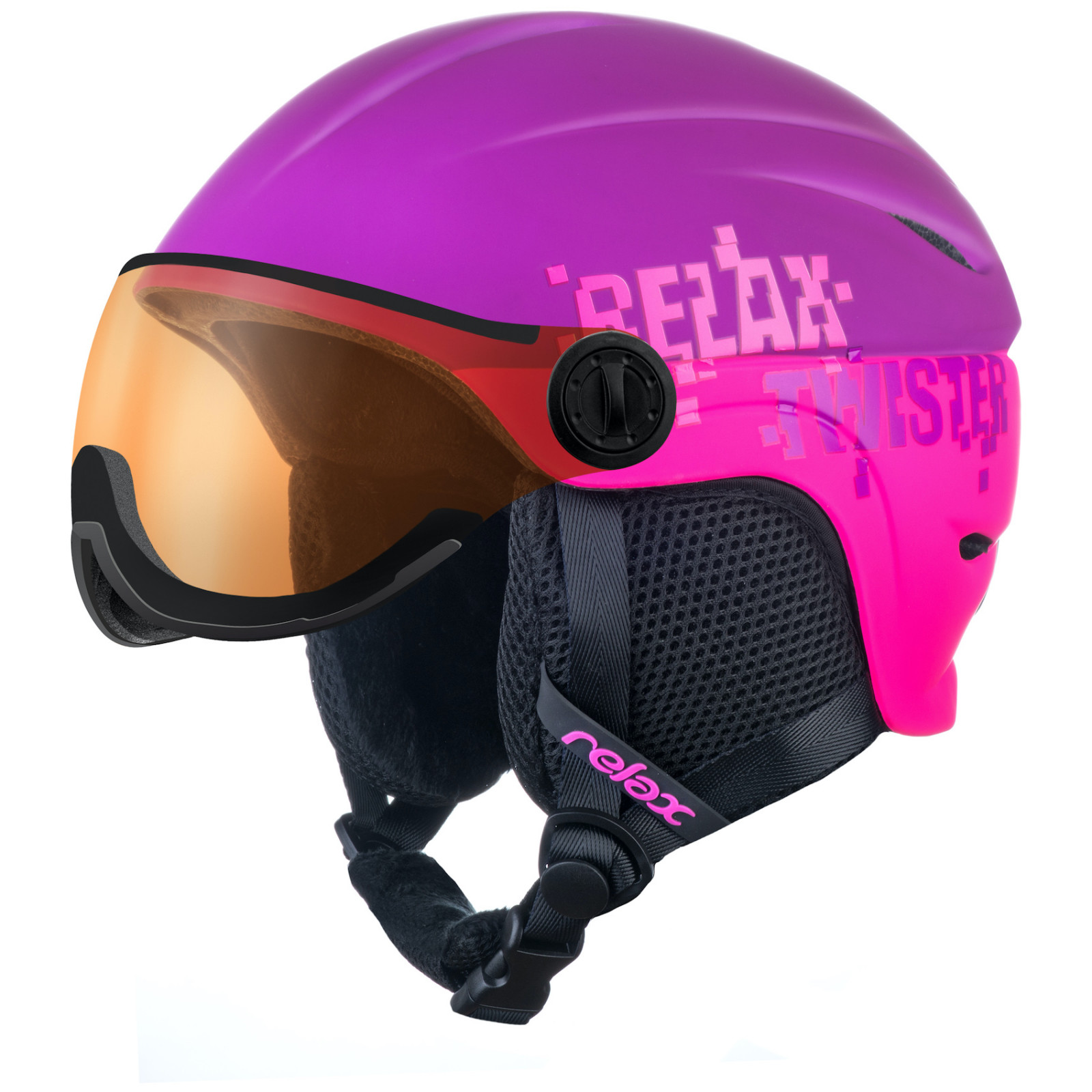 Název produktu: Dětská lyžařská přilba Relax Twister Visor Velikost helmy: 53-56 cm / Barva: tmavě fialová/růžová